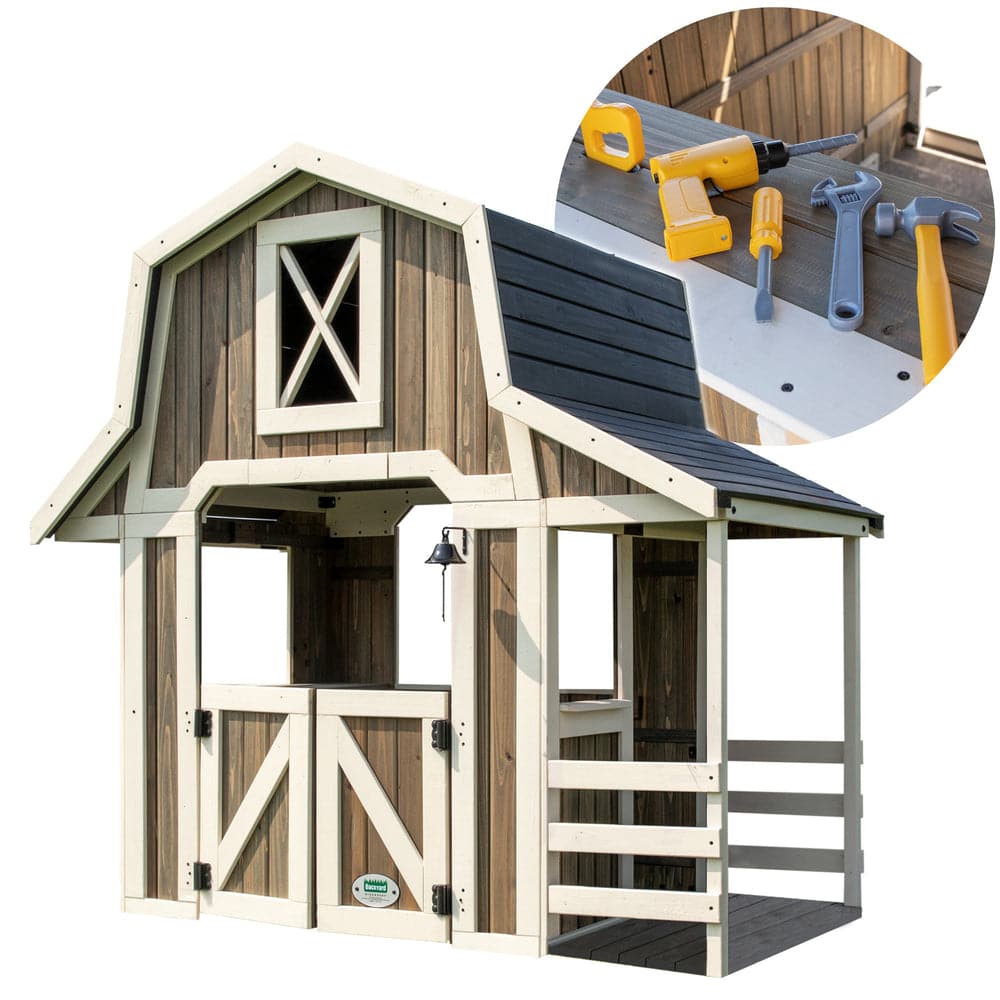 Calling all hard-working cowboys and cowgirls! The Little Country Workshop from Backyard Discovery will have your littles busy fixin’ and workin’ all the live long day. Made from 100% Cedar, this rustic functional barnhouse with hinged doors and a working dinner bell will spark country living in your own backyard. Included are five play tools with a slotted workbench to assist with your children’s imaginative play. Giddy up little doggies!