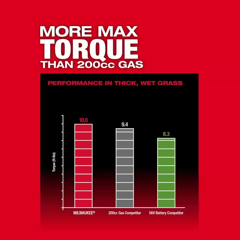 • Battery operated mower offers more max torque vs 200cc gas mower
