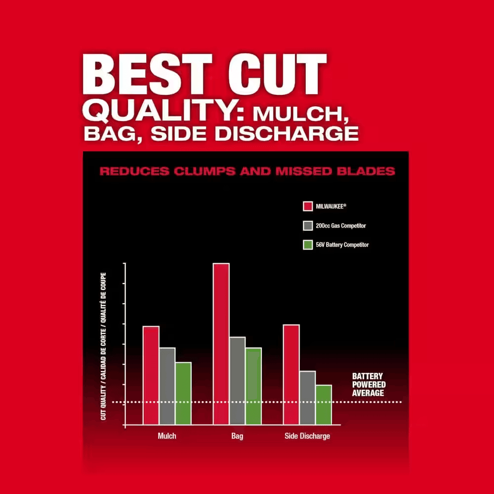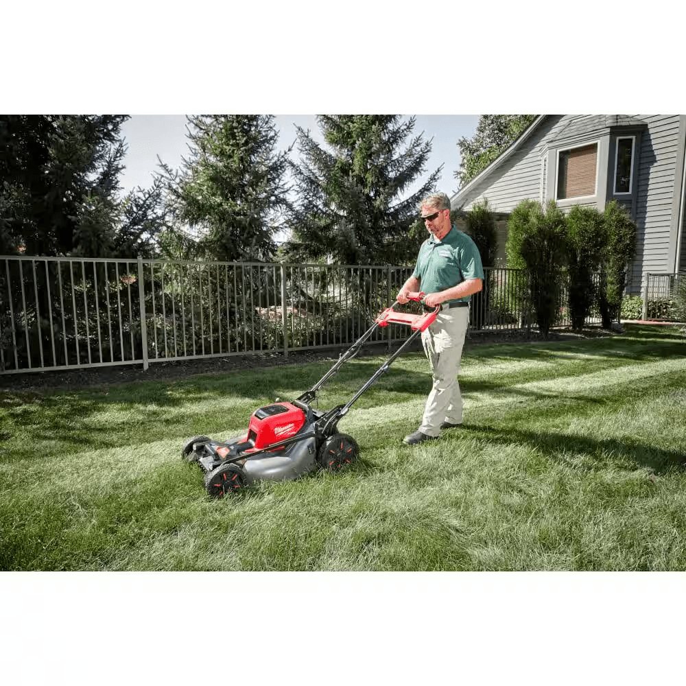 The MILWAUKEE M18 FUEL 21″ Self-Propelled Dual Battery Mower Kit meets the performance, durability, and ergonomic needs of landscape maintenance professionals. The optimized steel deck design and higher blade speed allow the mower to achieve superior airflow and increased lift for the best cut quality in mulching, bagging, and side discharge applications. The POWERSTATE Brushless Motor delivers more max torque than 200cc gas to take on the most demanding mowing applications. The REDLINK PLUS Intelligence has total system communication between the tool and battery for unmatched levels of performance, protection, and productivity. The advanced electronic package also delivers an instant throttle response on both the lawn mower blade and drive motors to reach full throttle in under 1 second, which increases user control and productivity. The mower requires 2 M18 REDLITHIUM Batteries for operation. When paired with the included 2 M18 REDLITHIUM HIGH OUTPUT HD12.0 batteries, the mower delivers up to 60 minutes of runtime for up to 1/2 acre of cutting when removing 1″ of grass at a 3 MPH self-propelled pace. The Variable Speed Self-Propelled Mower offers speeds between 0 – 4 MPH, and the Active Speed Management Paddles allow users to easily adjust their walking pace while in operation to increase control. The M18 FUEL Mower features a steel deck, 3-in-1 grass management, single point height adjustment, high lift mode, front & side LED lights, vertical storage, and two deck handles.