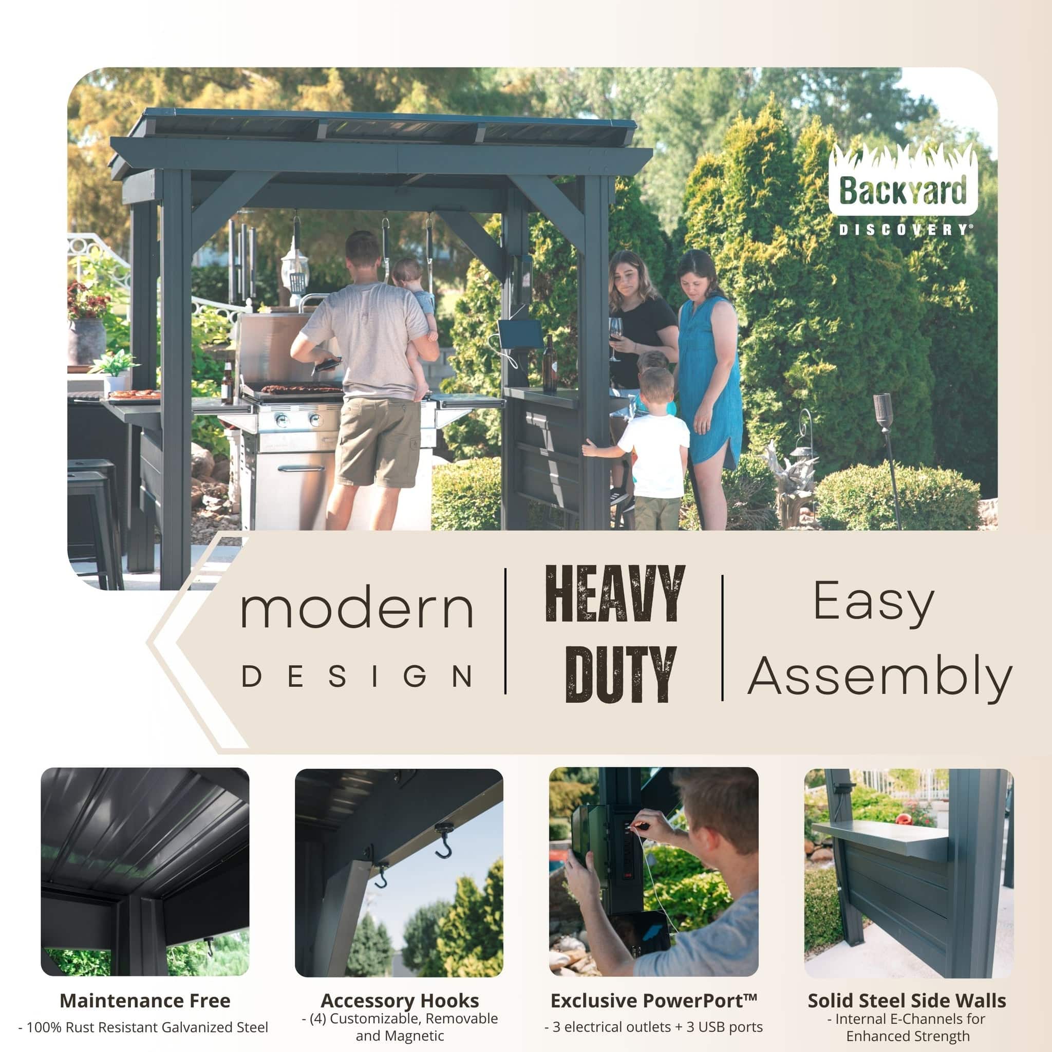 Outdoor cooking and eating never looked so good. Showcase your grill and grilling skills with our Rockport Steel Grill Gazebo.